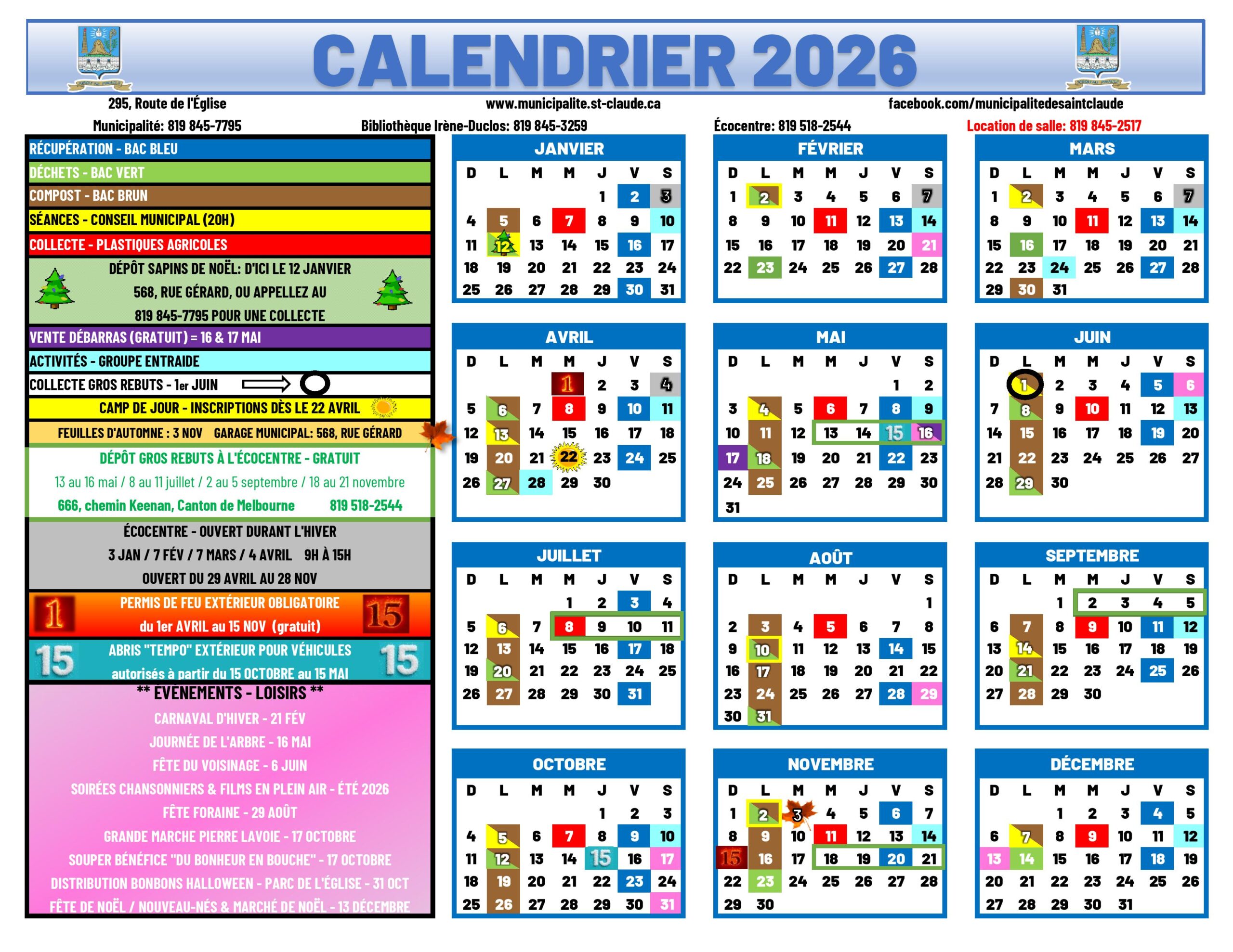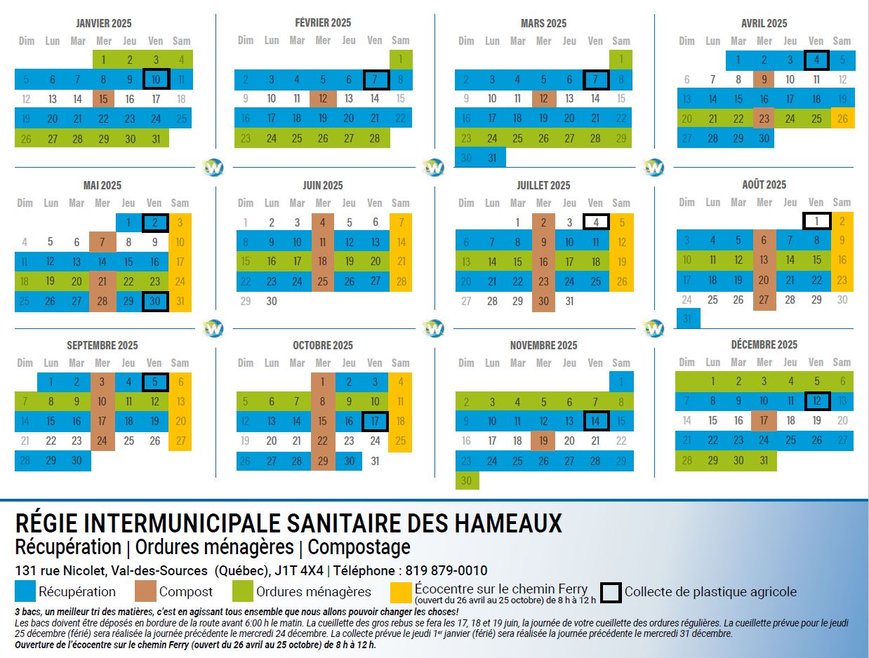 Comme les collectes hebdomadaires, nous demandons aux citoyens de mettre les matières au bord du chemin la veille ou avant l’heure de début des collectes, soit 6 h 00 am.